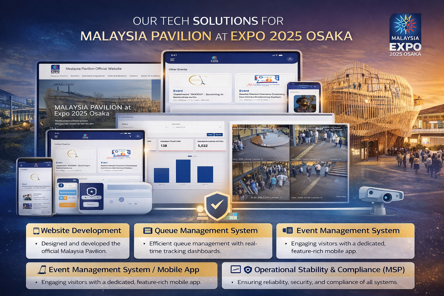 The Malaysia Pavilion faced the daunting task of launching a massive international presence within an exceptionally tight timeframe, requiring a comprehensive digital infrastructure to be built from scratch in under a month. Managing a project of this scale involved coordinating complex logistics, tracking real-time progress across multiple stakeholders, and preparing for high-volume foot traffic that could lead to operational bottlenecks. Furthermore, the pavilion required a "zero-failure" digital environment; any downtime or data breach on their public platforms or backend systems would not only disrupt operations but also risk the nation’s reputational standing on a global stage.